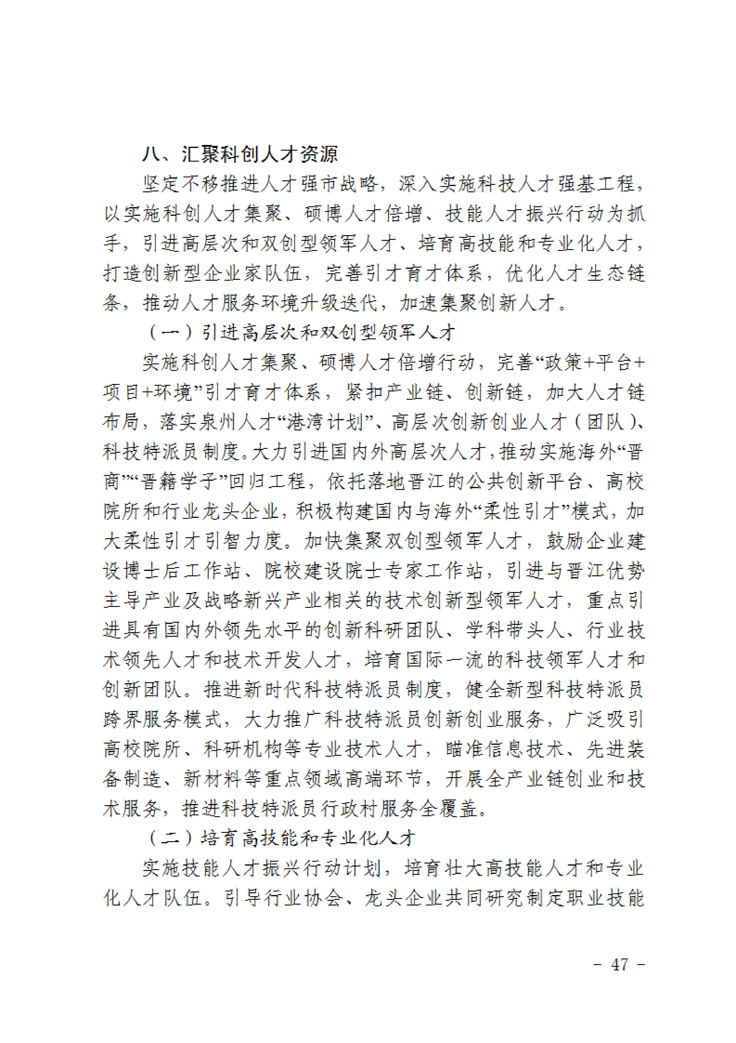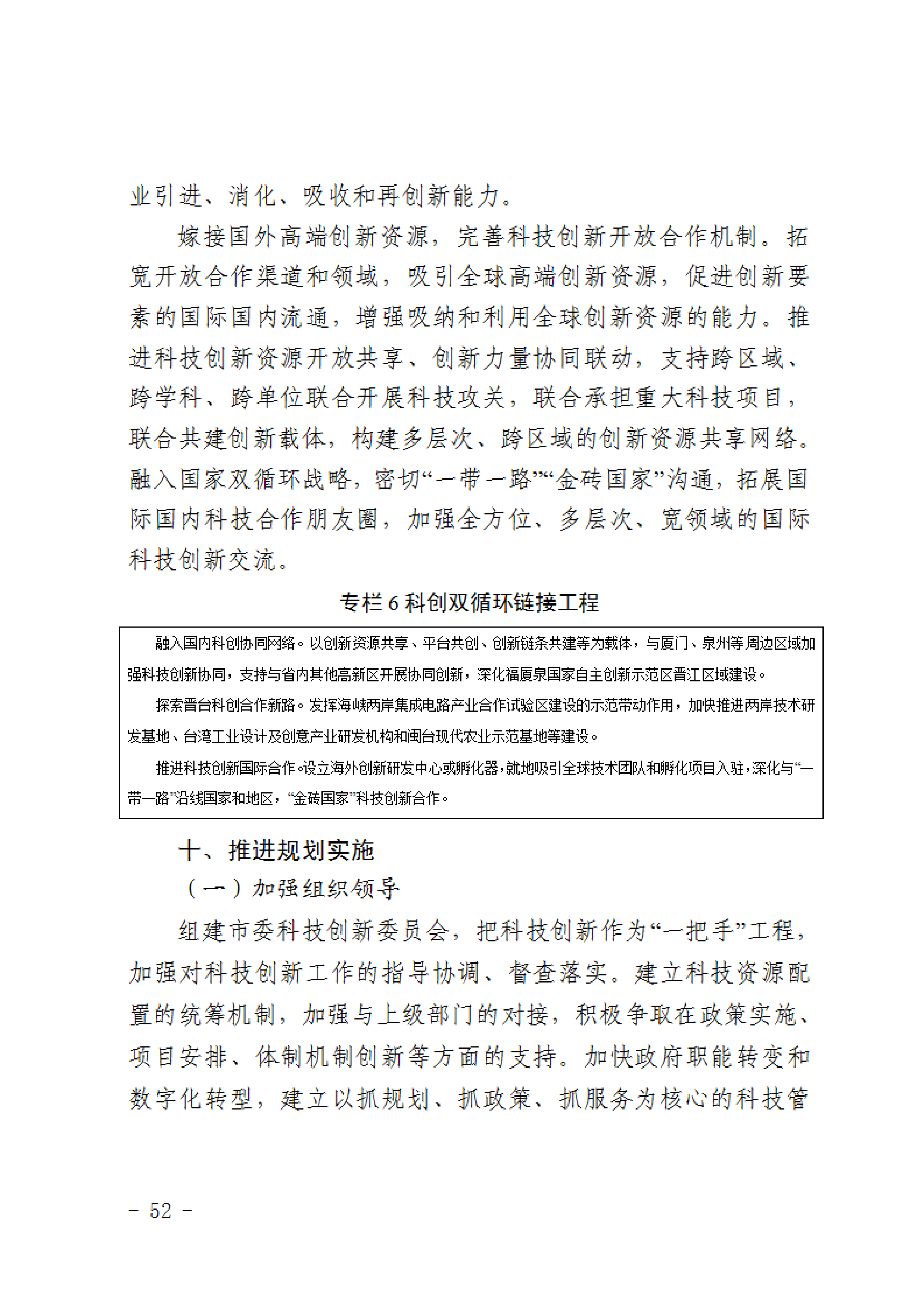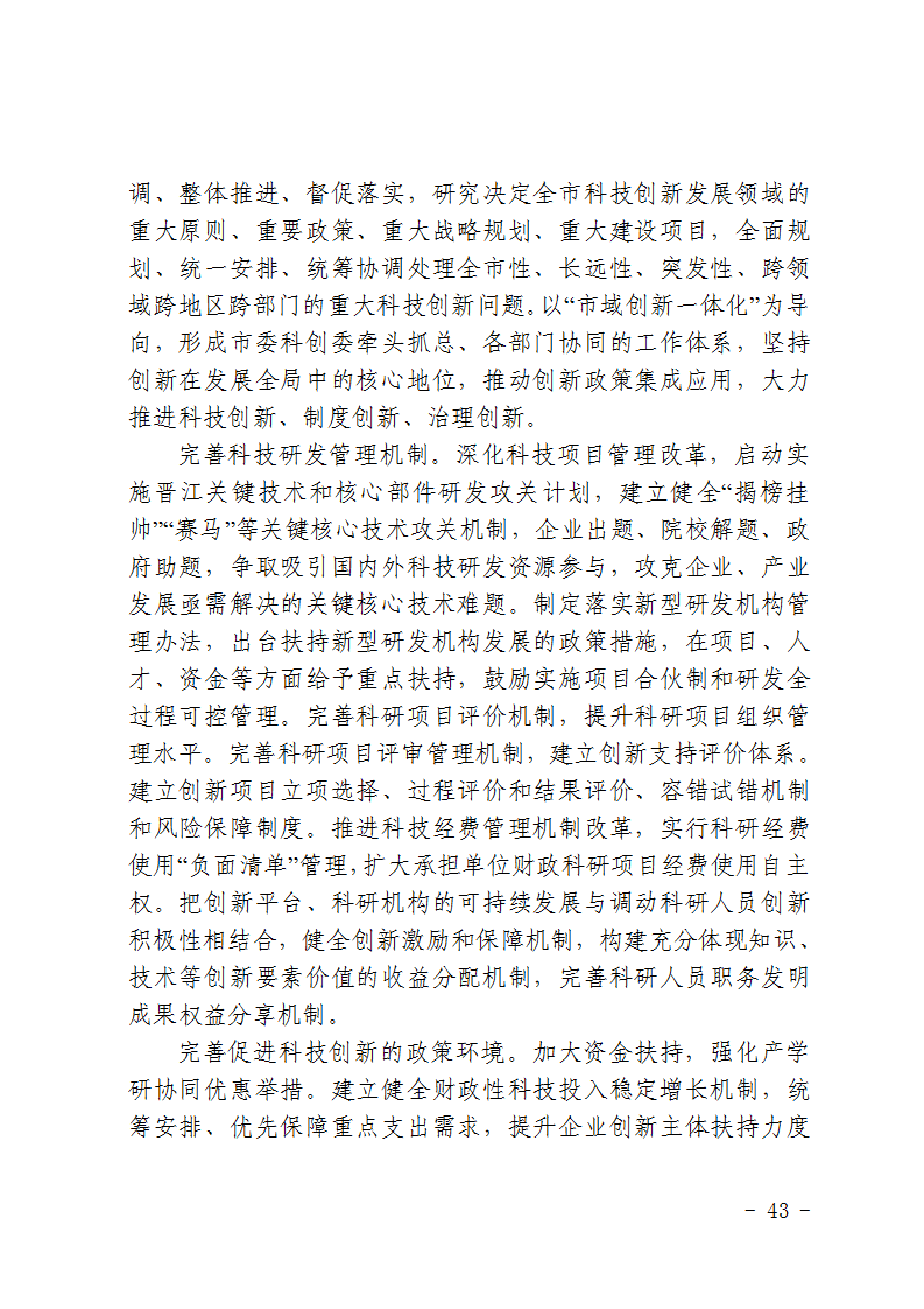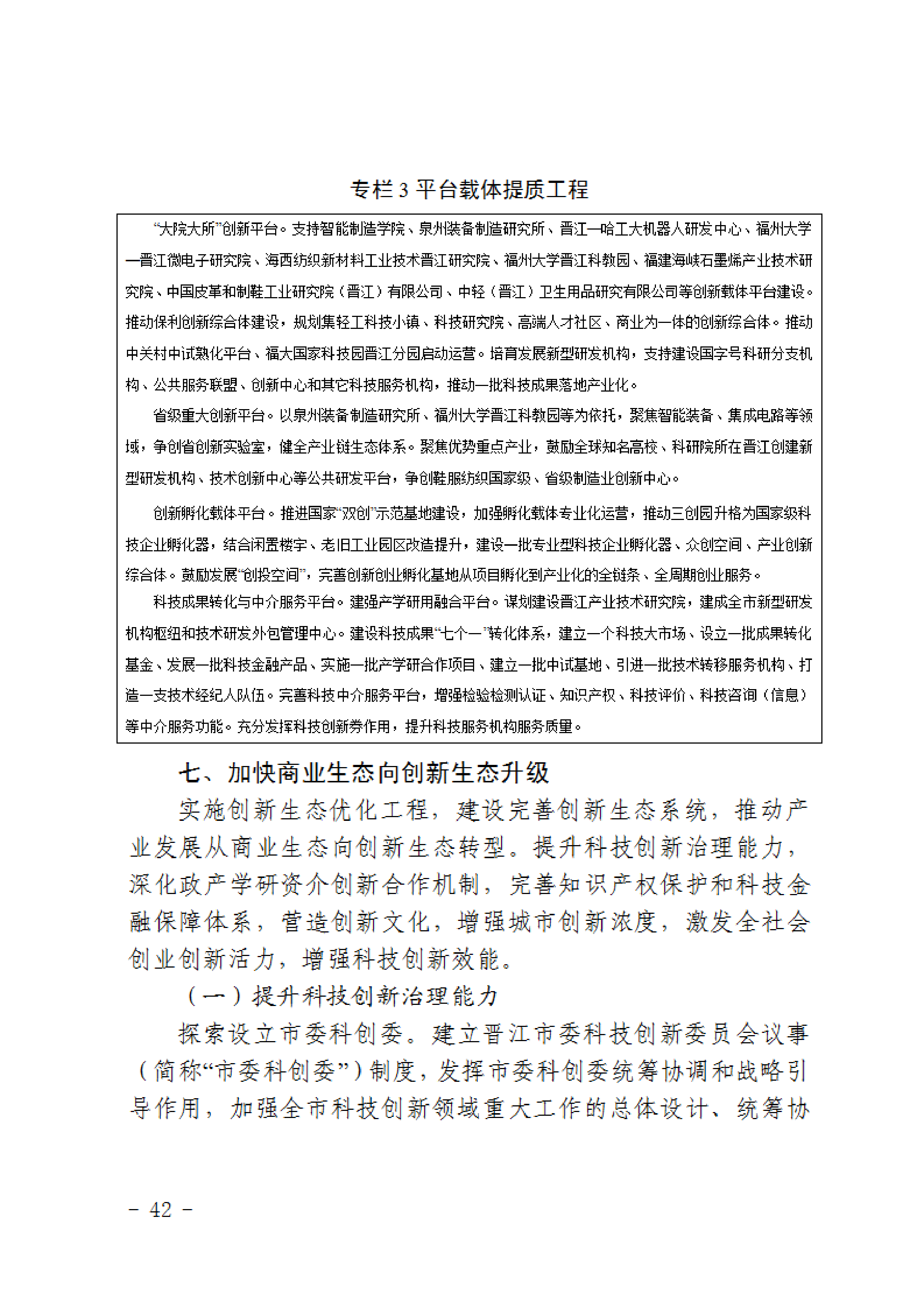關(guān)于印發(fā)晉江市“十四五”科技創(chuàng)新發(fā)展專項(xiàng)規(guī)劃的通知