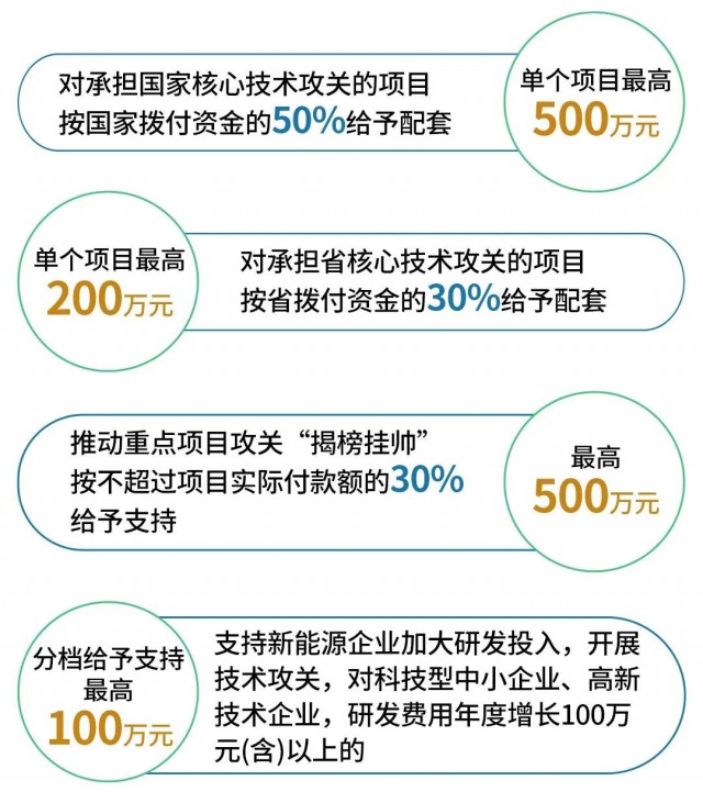 由中央直屬企業(yè)、國內行業(yè)龍頭企業(yè)、知名高校院所等與地方政府共建,以諾獎獲得者、院士等知名專家及其團隊為核心的新能源領域新型研發(fā)機構建設,給予最高300萬元建設經(jīng)費支持。