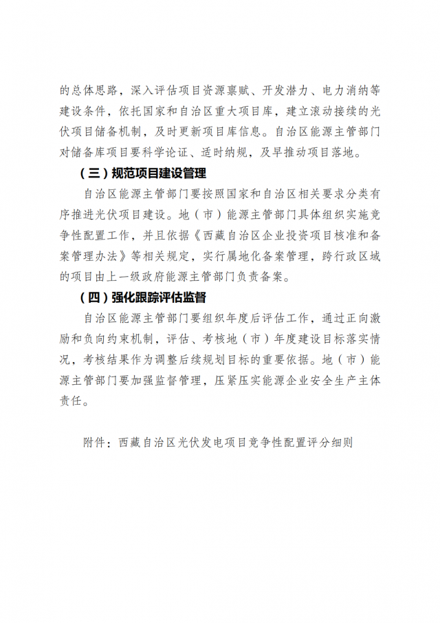 妥善解決光伏棄光限電問題 推進可再生能源利用示范區(qū)建設(shè),提高電能在終端用能中 的比例,加快新型儲能建設(shè),深度挖掘調(diào)度潛力。加強藏電外送力度,擴大區(qū)外市場消納能力。推進存量和新增光伏電站配置儲能、電網(wǎng)側(cè)儲能建設(shè),積極協(xié)調(diào)電網(wǎng)企業(yè)、金融機構(gòu)等部門,給予優(yōu)先調(diào)度、綠色金融等激勵政策,有效緩解全區(qū)棄光和局部限電的矛盾。