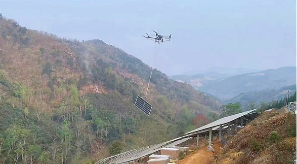 “近距離的無人機(jī)運(yùn)輸操作方便、飛行速度快、不受地形地勢影響,避免了人工運(yùn)輸風(fēng)險,解決了陡坡材料轉(zhuǎn)運(yùn)難題,大大提高了運(yùn)輸效率……”現(xiàn)場負(fù)責(zé)人說道。據(jù)了解,無人機(jī)在多塊電池循環(huán)使用的情況下可以實現(xiàn)連續(xù)作業(yè),一臺一天平均能夠運(yùn)輸360至400塊光伏板,相比騾馬運(yùn)輸而言,有效減少人力物力財力的投入,加快工程施工進(jìn)度,確保工程高效、優(yōu)質(zhì)履約。下一步,項目部將在無人機(jī)運(yùn)輸物資安全可行的基礎(chǔ)上總結(jié)、推廣成功經(jīng)驗,爭取提高整個施工區(qū)域建設(shè)的質(zhì)量與效率。