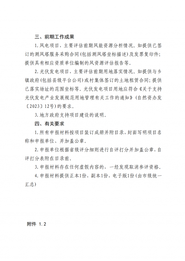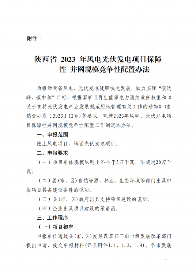 根據(jù)發(fā)布《陜西省2023年風電光伏發(fā)電項目保障性并網(wǎng)規(guī)模競爭性配置辦法》顯示,此次項目的申報范圍為陸上風電項目、地面光伏發(fā)電項目。申報要求為項目單體規(guī)模原則上不小于5萬千瓦、不超過20萬千瓦;縣(市、區(qū))自然資源、林業(yè)、生態(tài)環(huán)境等部門出具申報項目具備建設條件的說明;縣(市、區(qū))政府出具支持項目建設的說明;企業(yè)出具項目建設的承諾函。