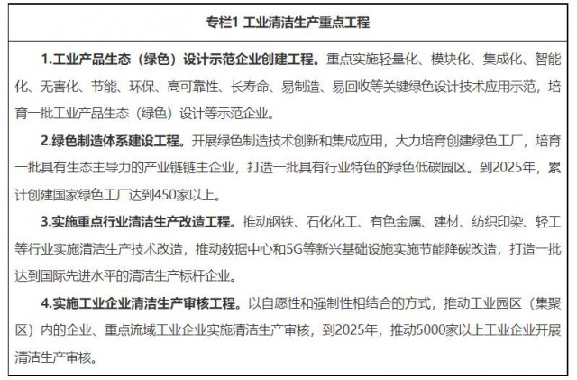 1.加快構(gòu)建綠色制造體系。在支持高質(zhì)量建設(shè)制造強(qiáng)省、推動產(chǎn)業(yè)有序轉(zhuǎn)移中,注重提升清潔生產(chǎn)水平,培育壯大清潔生產(chǎn)產(chǎn)業(yè)。強(qiáng)化全生命周期理念,全方位全過程推行工業(yè)產(chǎn)品綠色設(shè)計,擴(kuò)大綠色低碳產(chǎn)品供給,加強(qiáng)商品過度包裝治理。在生態(tài)環(huán)境影響大、產(chǎn)品涉及面廣、行業(yè)關(guān)聯(lián)度高的行業(yè),創(chuàng)建工業(yè)產(chǎn)品生態(tài)(綠色)設(shè)計示范企業(yè)。鼓勵行業(yè)協(xié)會發(fā)布綠色產(chǎn)品設(shè)計指南,推廣綠色設(shè)計案例。以電子信息、家電、汽車、化工、建材、紡織等我省特色行業(yè)為重點,引導(dǎo)企業(yè)對標(biāo)國際先進(jìn)水平實施綠色化改造。鼓勵汽車、家電、電子、機(jī)械、紡織、通信等行業(yè)龍頭企業(yè)構(gòu)建上下游聯(lián)動的綠色低碳產(chǎn)業(yè)鏈供應(yīng)鏈,帶動上下游企業(yè)同步實現(xiàn)綠色低碳發(fā)展。按照產(chǎn)業(yè)結(jié)構(gòu)、能源利用、運營管理、基礎(chǔ)設(shè)施等綠色化要求,推動條件成熟的園區(qū)開展碳達(dá)峰碳中和示范。