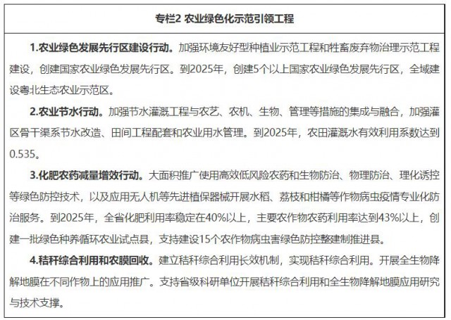 5.推廣農(nóng)業(yè)清潔生產(chǎn)新模式。落實百縣千鎮(zhèn)萬村高質(zhì)量發(fā)展各項要求,加快推進(jìn)農(nóng)業(yè)清潔生產(chǎn)。加快構(gòu)建種植業(yè)、畜禽養(yǎng)殖業(yè)、水產(chǎn)養(yǎng)殖業(yè)清潔生產(chǎn)技術(shù)體系,實施糧經(jīng)飼統(tǒng)籌、種養(yǎng)加結(jié)合、農(nóng)林牧漁融合發(fā)展等一體化發(fā)展模式。支持我省預(yù)制菜產(chǎn)業(yè)高質(zhì)量發(fā)展。大力發(fā)展綠色低碳循環(huán)農(nóng)業(yè),推進(jìn)農(nóng)光互補(bǔ)、“光伏+設(shè)施農(nóng)業(yè)”、“海上風(fēng)電+海洋牧場”等低碳農(nóng)業(yè)模式。增加農(nóng)村清潔能源供應(yīng),推動農(nóng)村生物質(zhì)能綜合利用。發(fā)展林業(yè)循環(huán)經(jīng)濟(jì),培育林業(yè)龍頭企業(yè),建設(shè)林草中藥材、油茶、竹等具有廣東特色的林業(yè)產(chǎn)業(yè)發(fā)展基地,積極創(chuàng)建國家現(xiàn)代林業(yè)產(chǎn)業(yè)示范園區(qū),實施森林生態(tài)標(biāo)志產(chǎn)品建設(shè)工程。以現(xiàn)代農(nóng)業(yè)產(chǎn)業(yè)園、農(nóng)林業(yè)龍頭企業(yè)等為重點,深入推行農(nóng)業(yè)清潔生產(chǎn),形成一批可推廣、可復(fù)制的典型案例。