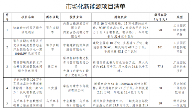 按照《內(nèi)蒙古自治區(qū)工業(yè)園區(qū)綠色供電項(xiàng)目實(shí)施細(xì)則(2022年版)》《內(nèi)蒙古自治區(qū)風(fēng)光制氫一體化項(xiàng)目實(shí)施細(xì)則(2022年版)》《內(nèi)蒙古自治區(qū)源網(wǎng)荷儲(chǔ)一體化項(xiàng)目實(shí)施細(xì)則(2022年版)》要求,我局組織專家對各盟市申報(bào)的5個(gè)市場化新能源項(xiàng)目方案進(jìn)行了評估,5個(gè)項(xiàng)目均納入市場化新能源項(xiàng)目清單,共配建新能源規(guī)模348.3萬千瓦,其中風(fēng)電259萬千瓦、光伏89.3萬千瓦。經(jīng)報(bào)請自治區(qū)人民政府同意,現(xiàn)將市場化新能源項(xiàng)目清單印發(fā)你們,并將有關(guān)要求通知如下。