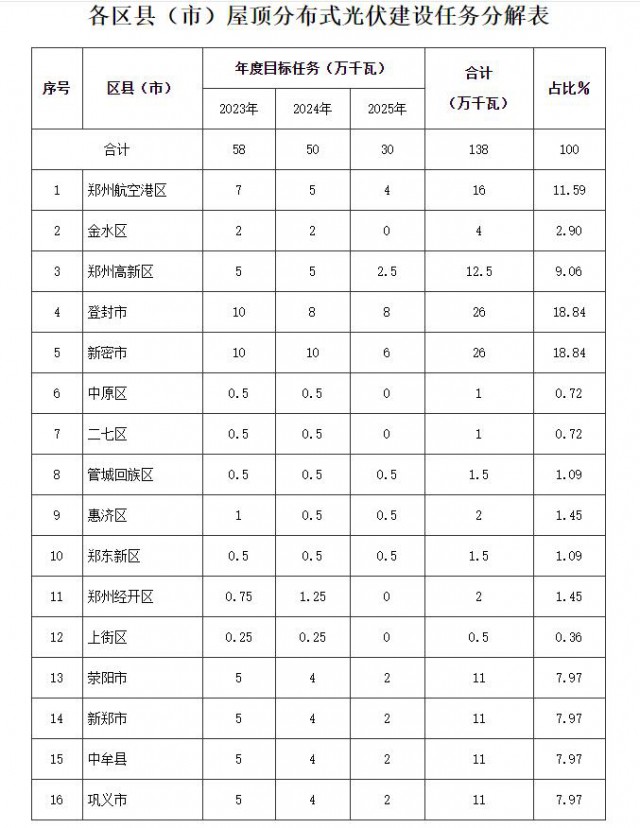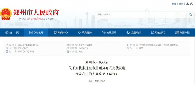 7月20日,鄭州市人民政府發(fā)布《關(guān)于加快推進(jìn)全市屋頂分布式光伏發(fā)電開發(fā)利用的實(shí)施意見(試行)》(簡(jiǎn)稱《意見》),明確工作目標(biāo)、重點(diǎn)任務(wù)和支持措施等事項(xiàng)。