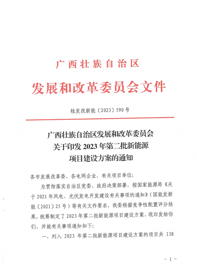 近日,廣西壯族自治區(qū)發(fā)展和改革委員會印發(fā)2023年第二批新能源項目建設方案的通知。