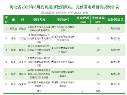 河北省2023年6月底到期風(fēng)電、光伏發(fā)電項目擬調(diào)整情況公示
