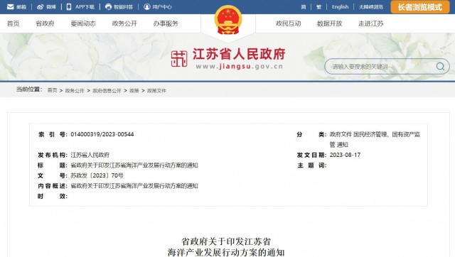 省政府關(guān)于印發(fā)江蘇省海洋產(chǎn)業(yè)發(fā)展行動(dòng)方案的通知
