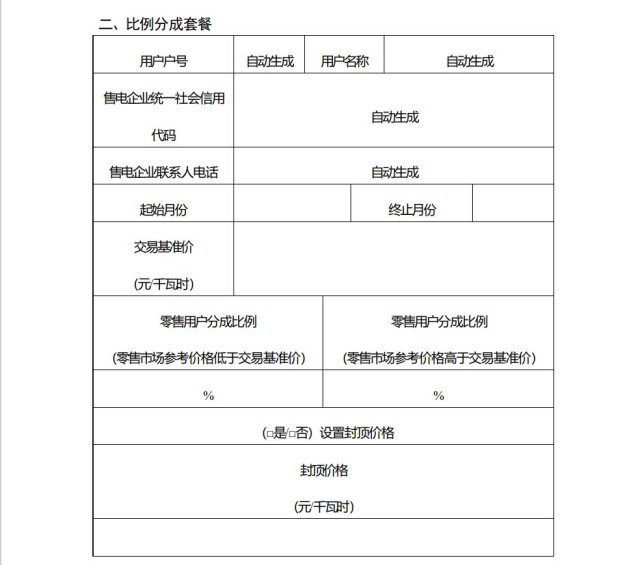2.比例分成套餐:售電公司與零售用戶約定分成基準價和分成比例,參照零售套餐參考價格進行收益分享、風(fēng)險共擔(dān)的零售套餐;