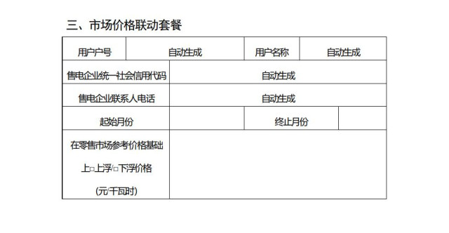 (六)售電公司應(yīng)在零售套餐中約定向零售用戶售電的期限,包括起始月份和終止月份。零售套餐按自然月生效,原則上起始月份不早于次月,終止月份不晚于起始月份當(dāng)年12月。
