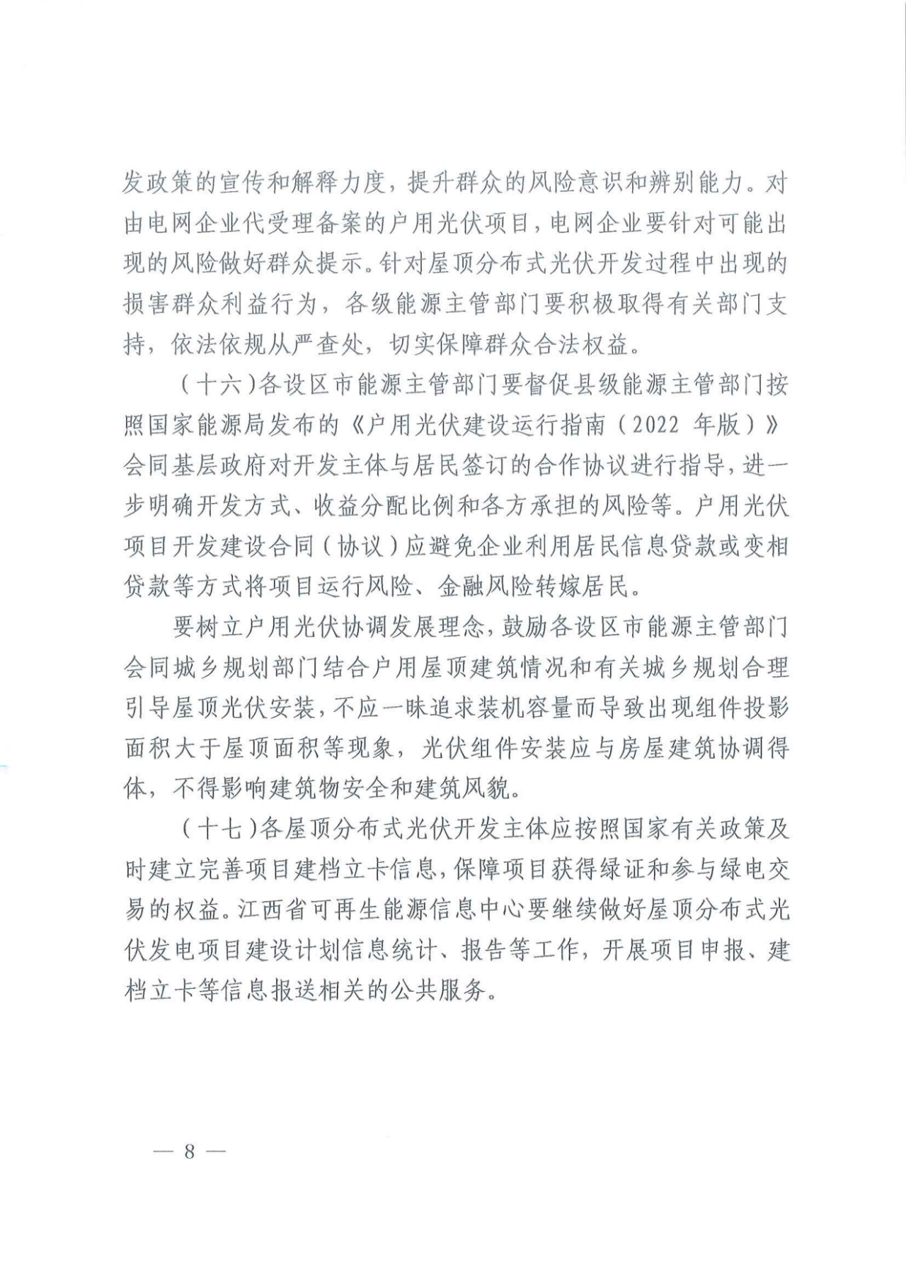11月30日,江西省能源局印發(fā)關(guān)于進(jìn)一步推進(jìn)屋頂分布式光伏健康有序發(fā)展的通知(征求意見稿)》,就電網(wǎng)承載消納能力與發(fā)展不匹配等問題給出針對性要求。