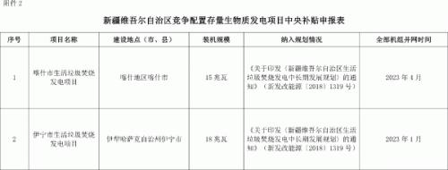 新疆維吾爾自治區(qū)發(fā)展和改革委員會關(guān)于擬申報中央補(bǔ)貼存量生物質(zhì)發(fā)電項(xiàng)目的公示