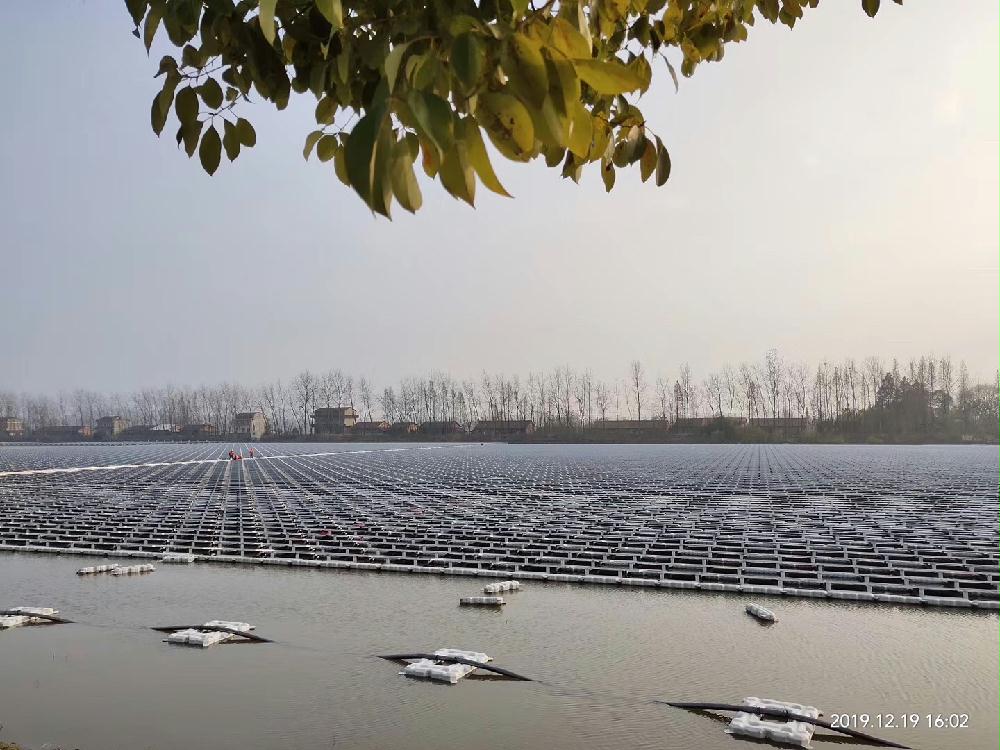 華銀益陽(yáng)北港長(zhǎng)河100兆瓦漁光互補(bǔ)光伏發(fā)電工程位于湖南省益陽(yáng)市沅江市泗湖山鎮(zhèn)北港長(zhǎng)河水域,水域面積約2200畝,水域岸線廠約8公里。本工程安裝光伏組件近28萬(wàn)塊,直流側(cè)容量122兆瓦,共設(shè)32個(gè)光伏發(fā)電方陣,全部為浮體安裝的固定運(yùn)行方式。每個(gè)光伏發(fā)電方陣由箱逆變一體機(jī)逆變升壓至35千伏,經(jīng)4條集電線路送至新建的110千伏升壓站,通過(guò)1回路110千伏線路接入國(guó)家電網(wǎng)。