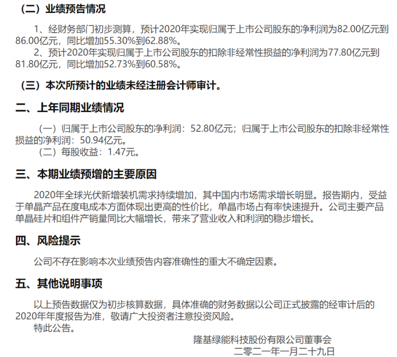 隆基股份發(fā)布2020年度業(yè)績預(yù)告