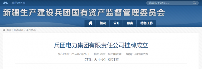 2月26日,從兵團國資委獲悉,新疆生產(chǎn)建設(shè)兵團電力集團有限責任公司在烏魯木齊舉行揭牌儀式,宣布正式成立。兵團電力集團有限責任公司是兵團國資國企改革中兵團本級成立的第一個產(chǎn)業(yè)集團公司,企業(yè)注冊資本金5億元,是新疆電力市場的重要主體和能源產(chǎn)業(yè)的新興力量。