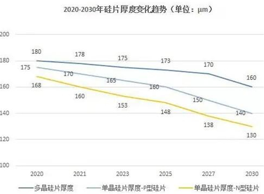 硅片薄片化是光伏產(chǎn)業(yè)的趨勢之一,但在近兩年硅片向大尺寸演進的情況下,進程有所放緩。晶科科技投資者關(guān)系總監(jiān)宋昊對業(yè)內(nèi)媒體表示,硅料價格一路上漲加速了硅片薄片化進程。眼下硅料漲價,供應(yīng)不足,就一定要接受薄片化。原來是可選項,現(xiàn)在已經(jīng)是必選項。