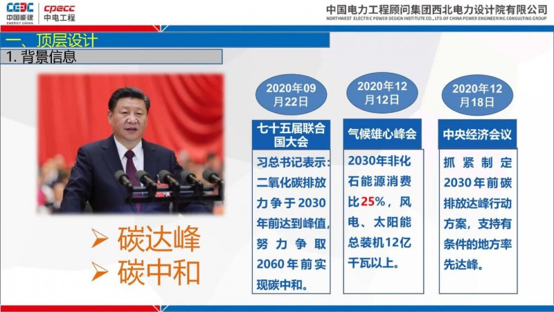 會上,中國能建西北電力設計院新能源與市政工程分院副設計總工程師李娜做 碳達峰碳中和背景下“推進一體化”項目開發(fā)與設計思考 演講,主要介紹了: