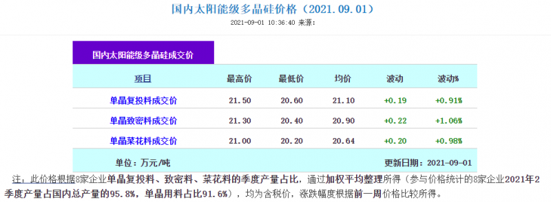 9月1日,硅業(yè)分會發(fā)布多晶硅最新價格信息。
