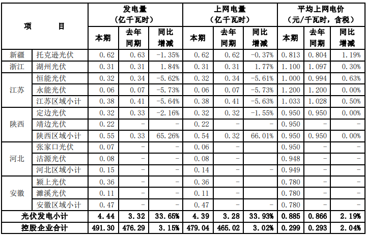 根據(jù)國投電力控股股份有限公司(以下簡稱公司)境內(nèi)控股企業(yè)初步統(tǒng)計(jì), 2021年 7-9 月,公司境內(nèi)控股企業(yè)累計(jì)完成發(fā)電量491.30 億千瓦時(shí),上網(wǎng)電量479.04 億千瓦時(shí),與去年同期相比分別增加3.15%和3.02%。2021年1-9月,公司境內(nèi)控股企業(yè)累計(jì)完成發(fā)電量1148.29億千瓦時(shí),上網(wǎng)電量1116.45億千瓦時(shí), 與去年同期相比分別增加 2.28%和2.05%。 2021年7-9 月,公司境內(nèi)控股企業(yè)平均上網(wǎng)電價(jià)0.299 元/千瓦時(shí),與去年同期相比增加了 2.04%。