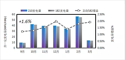 2. 210組件的低輻照性能優(yōu)勢顯著,對發(fā)電量有明顯提升。