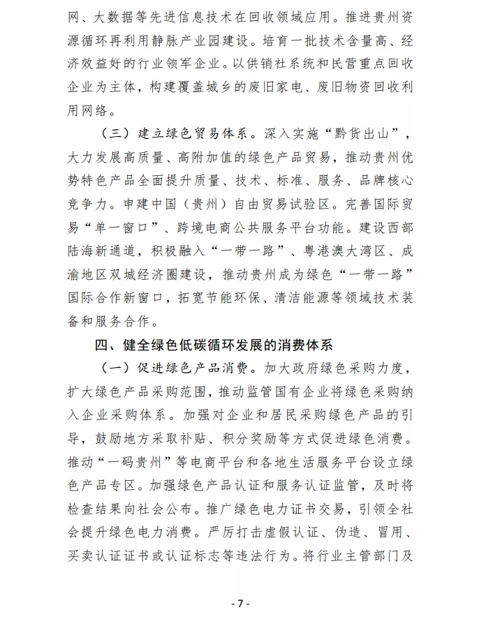 貴州省加快建立健全綠色低碳循環(huán)發(fā)展經(jīng)濟體系實施方案