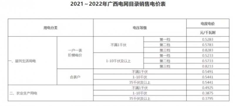 2021~2022年廣西電網(wǎng)輸配電價(jià)表