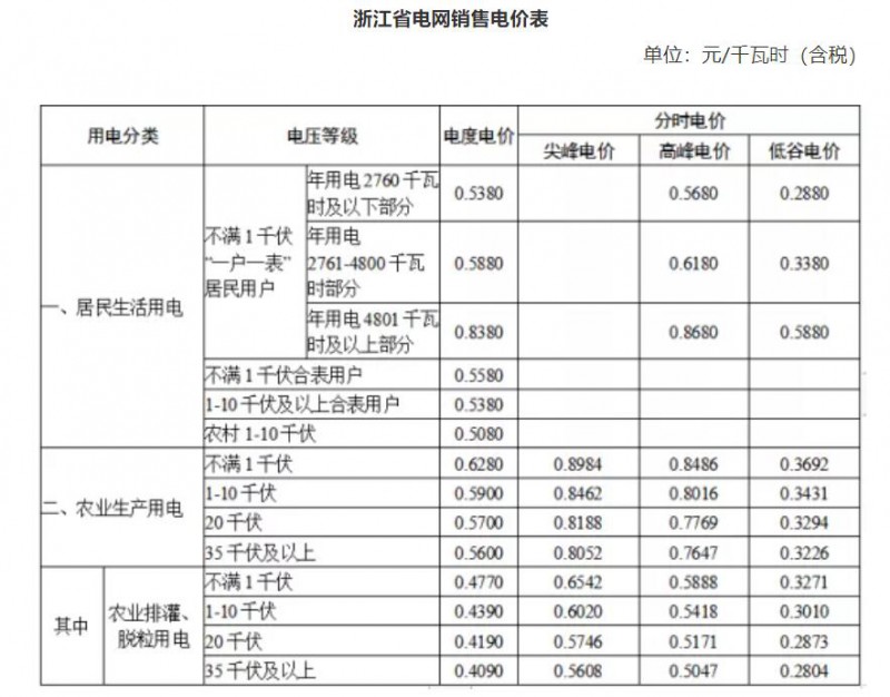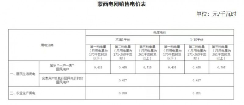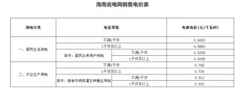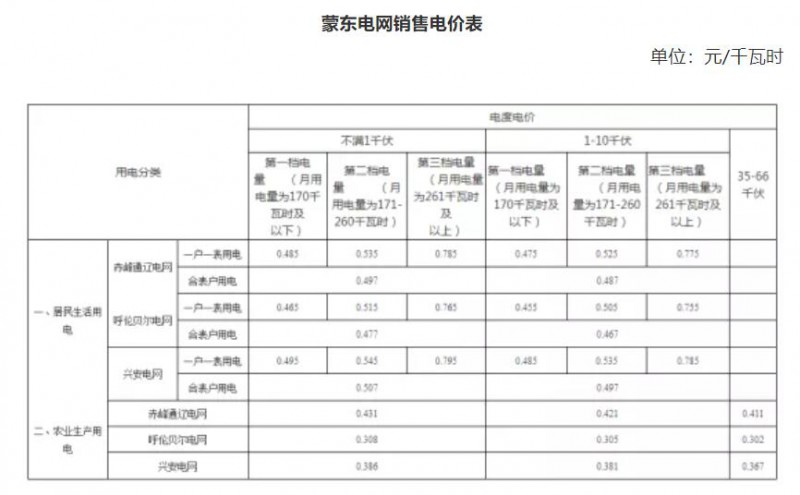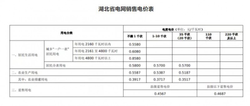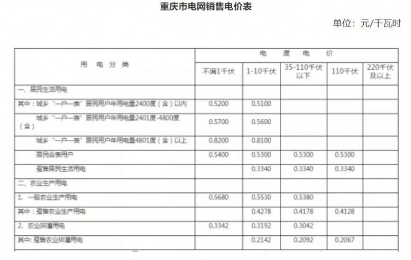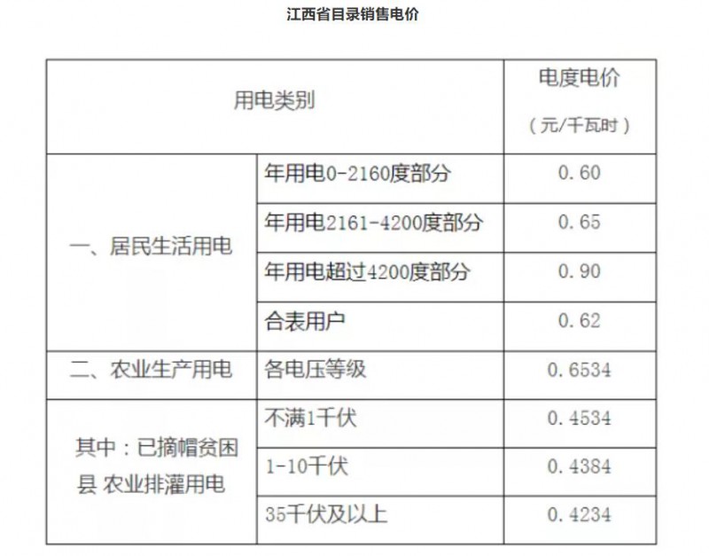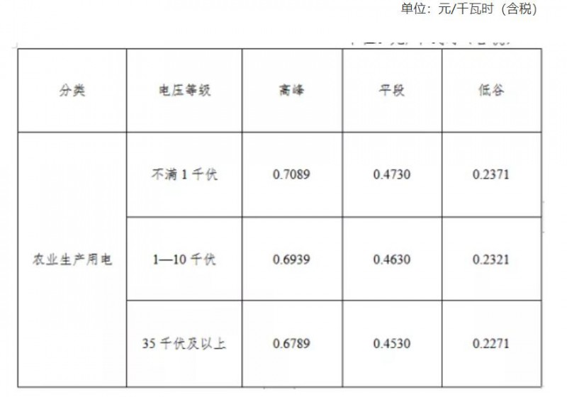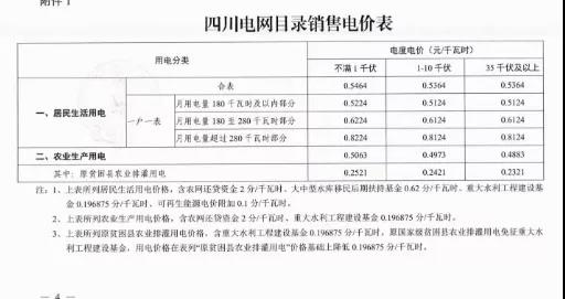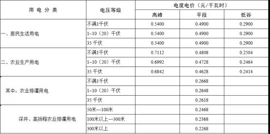 備注:1、農(nóng)村低壓各類(lèi)用電按上表合計(jì)欄電價(jià)執(zhí)行,其中含維管費(fèi)。2、一戶(hù)一表居民生活用電二檔、三檔電價(jià),在一檔電價(jià)基礎(chǔ)上每千瓦時(shí)分別提高0.05元和0.3元。