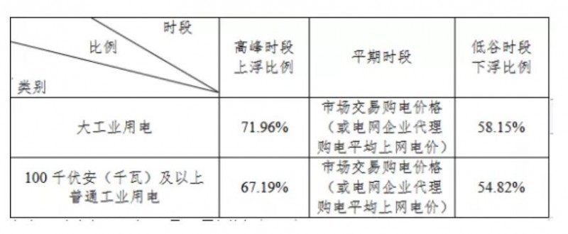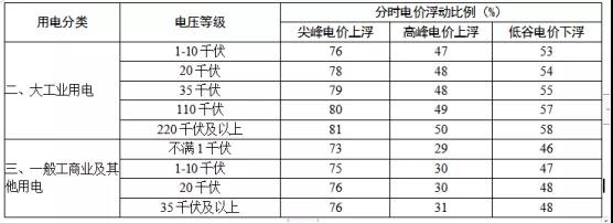 江蘇省工業(yè)用電峰谷分時(shí)電價(jià)浮動(dòng)比例表