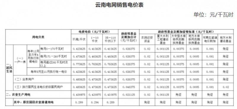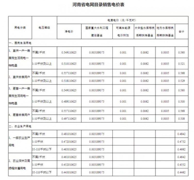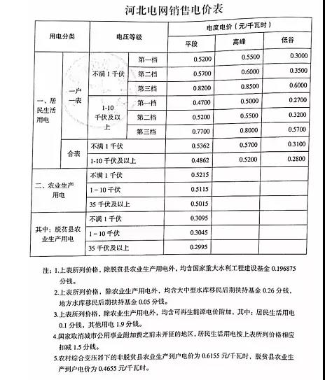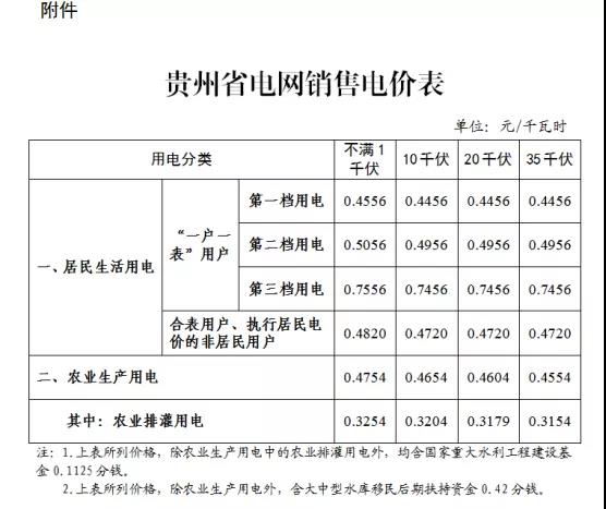 注:1、上表所列價(jià)格,除已摘帽貧困縣農(nóng)業(yè)排灌用電外,均含國(guó)家重大水利工程建設(shè)基金0.15525分錢(qián)。2、上表所列價(jià)格,居民生活用電含可再生能源電價(jià)附加0.1分錢(qián),含大中型水庫(kù)移民后期扶持基金0.62分錢(qián)。