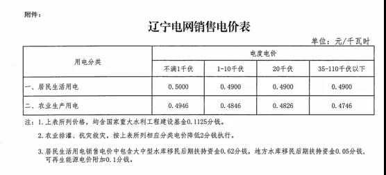 注:上表所列價(jià)格,除農(nóng)業(yè)生產(chǎn)用電外,居民生活用電含國(guó)家重大水利工程建設(shè)基金0.1125分錢(qián)、大中型水庫(kù)移民后期扶持基金0.62分錢(qián)和可再生能源電價(jià)附加0.1分錢(qián)。
