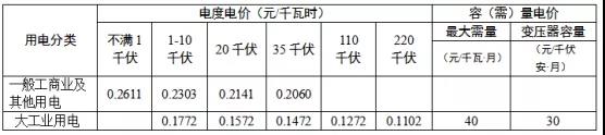 注:1. 表中電價(jià)含增值稅、線(xiàn)損及交叉補(bǔ)貼、區(qū)域電網(wǎng)容量電價(jià),不含政府性基金及附加。2. 一般工商業(yè)及其他、大工業(yè)用電的輸配電價(jià)水平執(zhí)行上表,并按規(guī)定標(biāo)準(zhǔn)另行征收政府性基金及附加,基金及附加標(biāo)準(zhǔn)(分/每千瓦時(shí)):國(guó)家重大水利建設(shè)基金0.403875分、大中型水庫(kù)移民扶持基金0.62分、可再生能源附加1.9分。