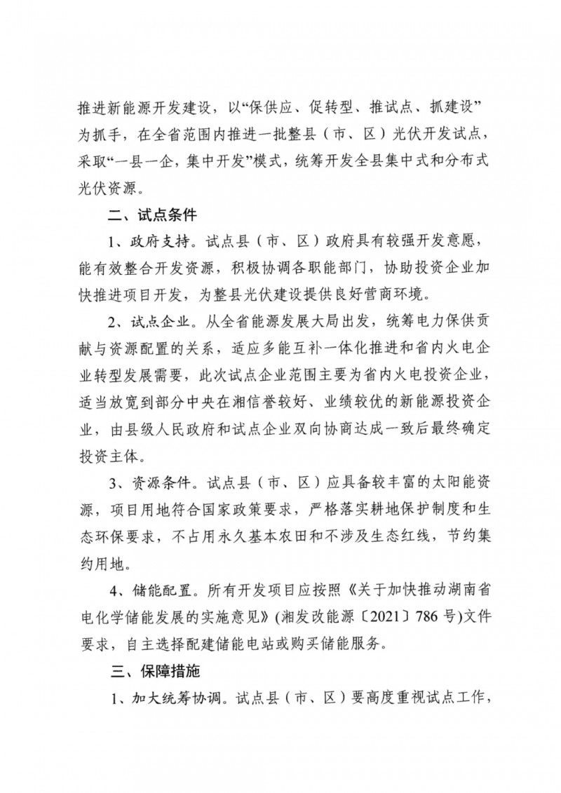 11月15日,湖南省發(fā)改委下發(fā)《關(guān)于開展整縣(市、區(qū))光伏開發(fā)試點(diǎn)的通知》,擬在全省范圍內(nèi)組織推進(jìn)一批整縣(市、區(qū))光伏開發(fā)試點(diǎn),高效整合縣域資源,結(jié)合多能互補(bǔ)協(xié)同發(fā)展。