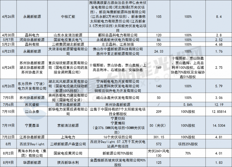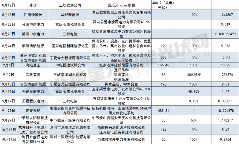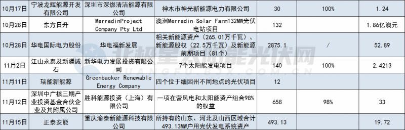正泰之后,中廣核以658MW電站出售規(guī)模排名賣方市場(chǎng)第四。11月12日,新加坡勝科工業(yè)宣布已通過(guò)全資子公司勝科能源投資(上海)有限公司簽署股權(quán)購(gòu)買協(xié)議,將以33億元收購(gòu)深圳中廣核三期產(chǎn)業(yè)投資基金合伙企業(yè)及其附屬公司一項(xiàng)在營(yíng)風(fēng)電和太陽(yáng)能資產(chǎn)組合98%的權(quán)益,涉及電站10個(gè),總裝機(jī)658MW。據(jù)了解,此次收購(gòu)預(yù)計(jì)將于明年上半年完成。