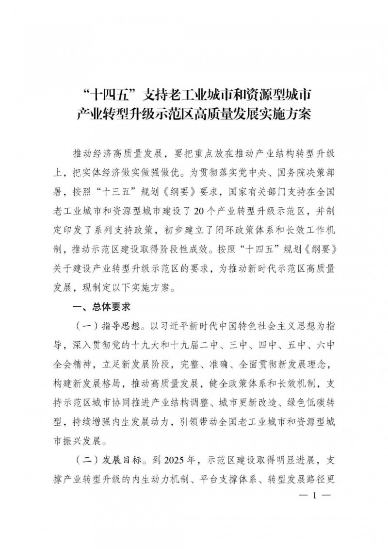 國家發(fā)展改革委等部門關(guān)于印發(fā)《“十四五”支持老工業(yè)城市和資源型城市產(chǎn)業(yè)轉(zhuǎn)型升級(jí)示范區(qū)高質(zhì)量發(fā)展實(shí)施方案》的通知