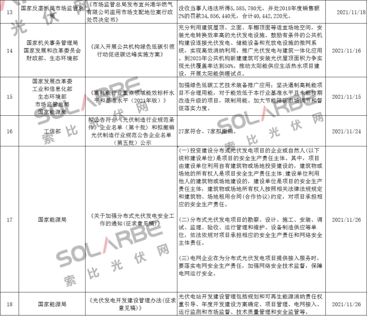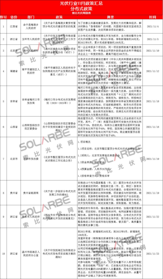 那么,11月份的光伏行業(yè)有哪些政策值得重點(diǎn)關(guān)注呢?下面來看索比光伏網(wǎng)的梳理。