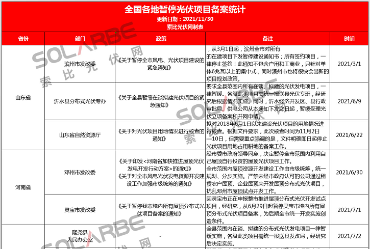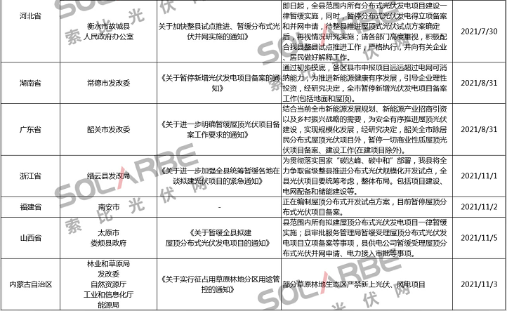 全國各地暫停光伏項(xiàng)目備案統(tǒng)計(jì)(全年統(tǒng)計(jì))