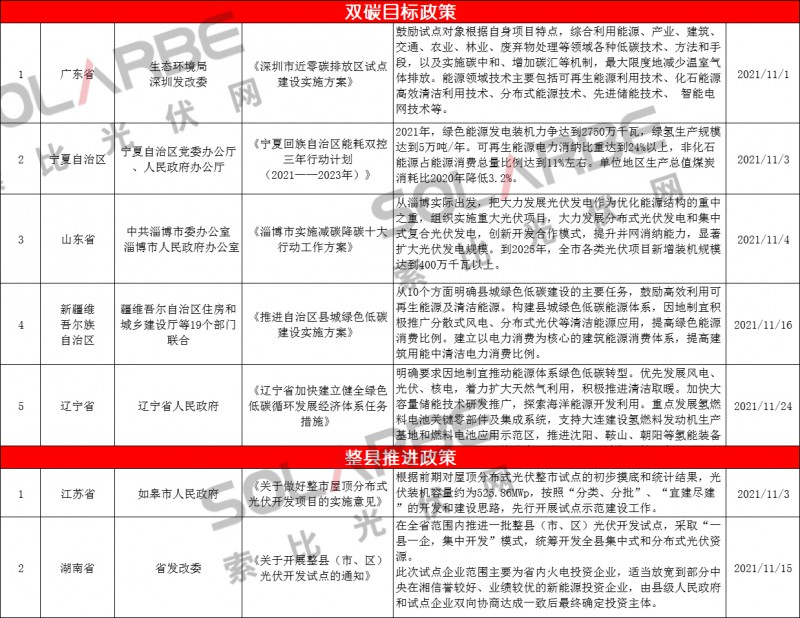那么,11月份的光伏行業(yè)有哪些政策值得重點(diǎn)關(guān)注呢?下面來看索比光伏網(wǎng)的梳理。
