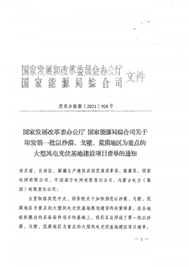 日前,光伏們了解到,各省已收到國家能源局、國家發(fā)改委印發(fā)的《第一批以沙漠、戈壁、荒漠地區(qū)為重點的大型風(fēng)電、光伏基地建設(shè)項目清單的通知》,涉及19省份,規(guī)模總計97.05GW。