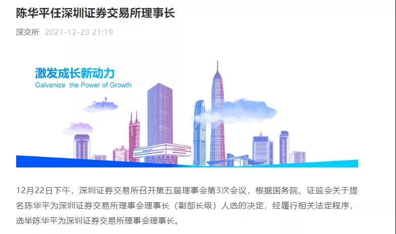 同時(shí),深交所官網(wǎng)上的領(lǐng)導(dǎo)班子介紹信息已更新。官網(wǎng)顯示,陳華平,男,漢族,1968年12月出生,法學(xué)學(xué)士,中共黨員?,F(xiàn)任深圳證券交易所黨委書記、理事長(zhǎng)。