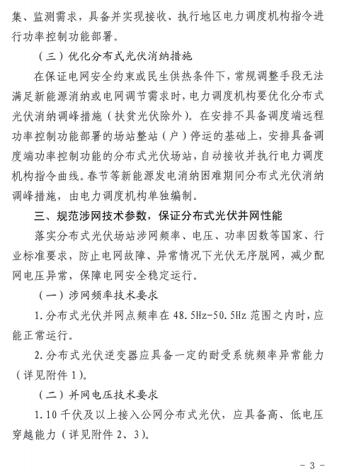 近日,國家能源局山東監(jiān)管辦公室 山東省能源局發(fā)布關(guān)于切實做好分布式光伏并網(wǎng)運行工作的通知,通知指出四點,一、加強接入能力評估,做好分布式光伏接網(wǎng)工作;二、強化安全運行條件,實現(xiàn)分布式光伏精準監(jiān)控調(diào)度;三、規(guī)范涉網(wǎng)技術(shù)參數(shù),保證分布式光伏并網(wǎng)性能;四、加強協(xié)同聯(lián)動,強化監(jiān)督考核。