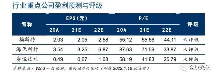 東興證券認(rèn)為,展望2022年,膠膜的年化產(chǎn)能遠(yuǎn)低于硅片、電池片等其他環(huán)節(jié),膠膜銷售價(jià)格有望持續(xù)堅(jiān)挺。隨著上游原材料供應(yīng)瓶頸得到緩解,成本端壓力有望得到釋放。膠膜行業(yè)的議價(jià)能力和盈利能力均有望在22年迎來拐點(diǎn)。長遠(yuǎn)來看,膠膜作為光伏組件的關(guān)鍵輔材之一,市場規(guī)模將持續(xù)擴(kuò)容,產(chǎn)品結(jié)構(gòu)將持續(xù)優(yōu)化,二線企業(yè)將迎來競爭洗牌的突圍機(jī)遇期。
