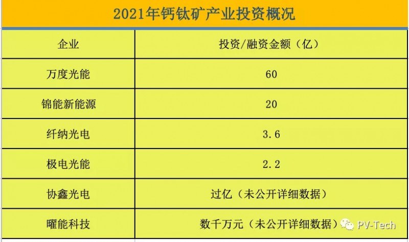 2021年鈣鈦礦產(chǎn)業(yè)投資概況,PV-Tech整理