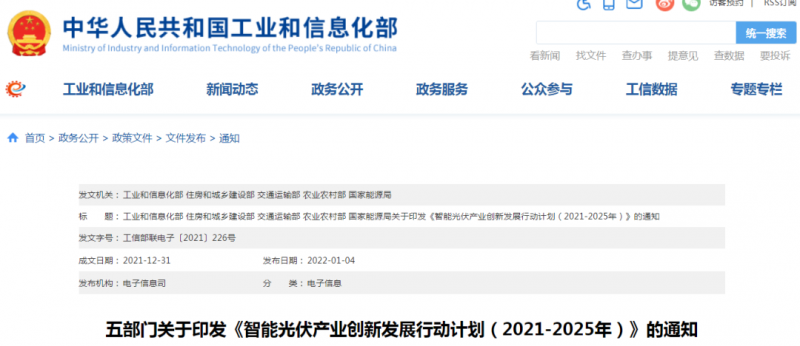 2022年1月4日,工信部等五部門聯(lián)合印發(fā)《智能光伏產(chǎn)業(yè)創(chuàng)新發(fā)展行動計劃(2021-2025年)》,其中的主要任務就包括助力“智能光伏交通”在內(nèi)的各領域碳達峰碳中和。加快“光伏+交通”等融合發(fā)展項目推廣應用,推動交通領域光伏電站及充電樁示范建設。堅持充分論證、因地制宜、試點先行的原則,鼓勵光伏發(fā)電在公路服務區(qū)(停車場)、加油站、公路邊坡、公路隧道、公交貨運場站、港口碼頭、航標等導助航設施、碼頭躉船、海島工作站點等領域的應用。