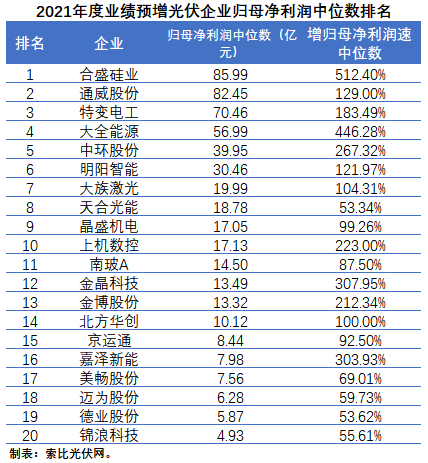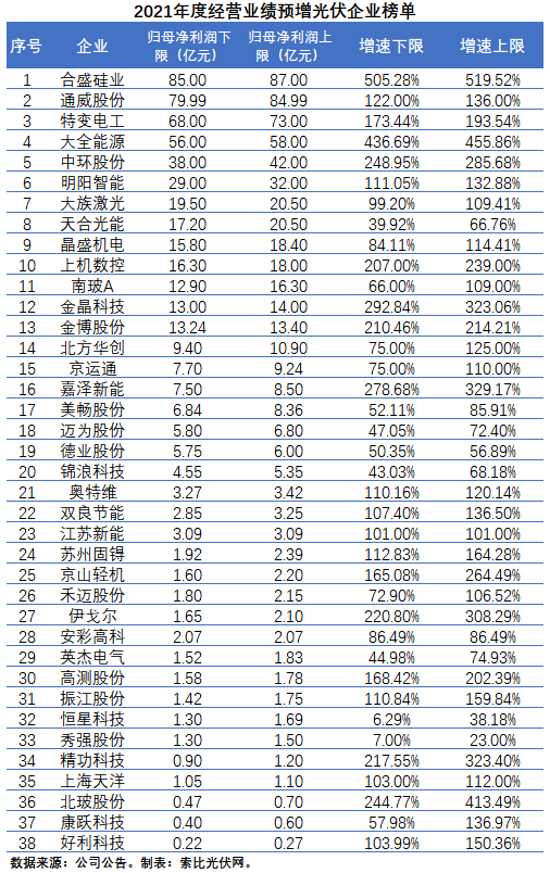 除了這38家企業(yè)以外,其實還有相當多的光伏企業(yè)在2021年經(jīng)營業(yè)績亦呈增長態(tài)勢,只是它們沒有達到業(yè)績預(yù)告的披露標準而已。