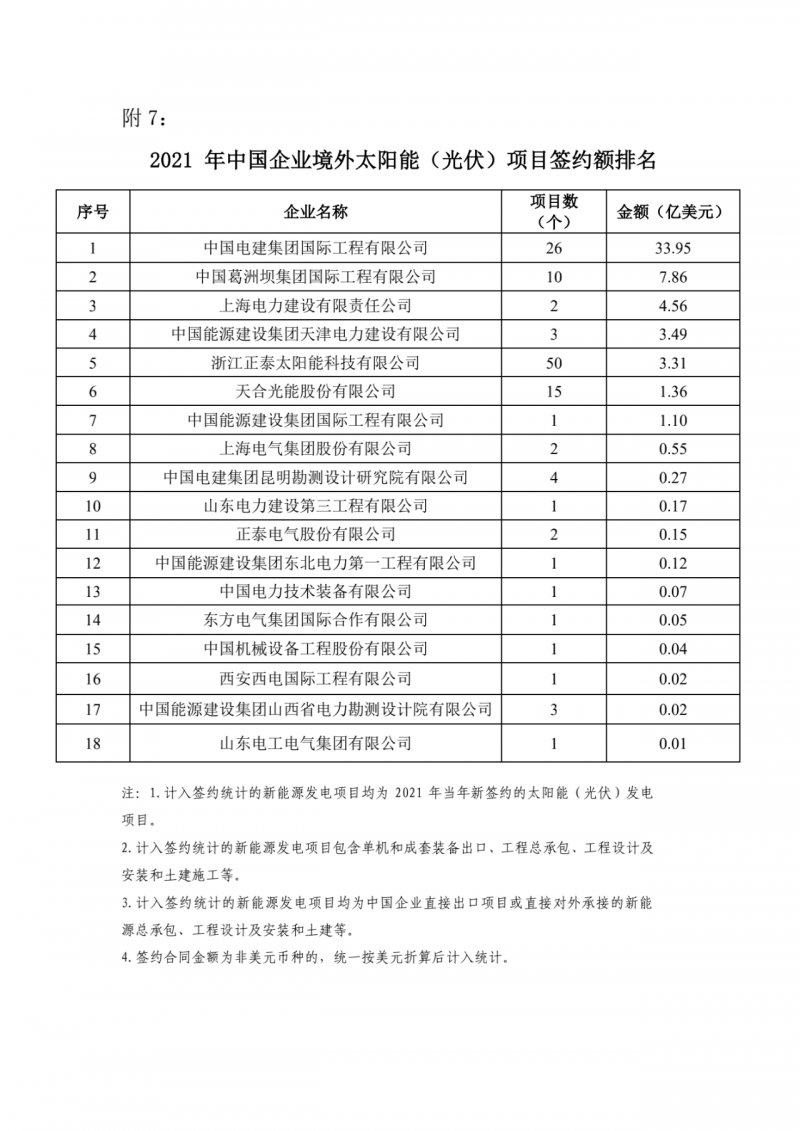 據(jù)了解,計入簽約統(tǒng)計的新能源發(fā)電項目包含單機和成套裝備出口、工程總承包、工程設(shè)計及安裝和土建施工等;新能源發(fā)電項目均為中國企業(yè)直接出口項目或直接對外承接的新能源總承包、工程設(shè)計及安裝和土建等。