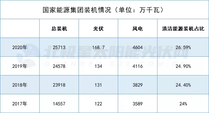 一直以來,國家能源集團雖然在新能源的裝機總規(guī)模排位靠前,但其清潔能源占比偏低。截至2020年末,國家能源集團的清潔能源裝機占比為26.59%,在五大發(fā)電集團中排位最末。尤其是光伏領域,占比僅為0.65%,成為國家能源集團需要補足的“短板”。