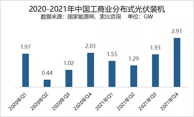 與此同時(shí),下半年以來(lái),在中央“能耗雙控”政策、電價(jià)政策的共同推動(dòng)下,工商業(yè)分布式光伏也取得歷史最好成績(jī),全年新增裝機(jī)7.68GW,其中四季度新增裝機(jī)近3GW。