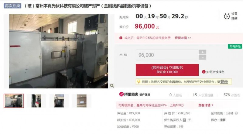近日,一批土地使用權、光伏電站機器設備及金剛線多晶截斷機、上下料機、太陽能晶片計數(shù)儀等光伏設備即將在阿里司法拍賣平臺進行拍賣。