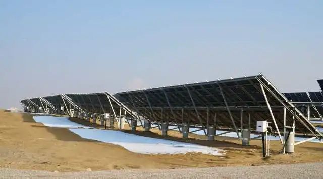 一望無際的光伏發(fā)電板在陽光照射下,像向日葵一樣隨著太陽的位置自動(dòng)轉(zhuǎn)動(dòng)。“這是采取跟蹤光伏技術(shù),能最大化利用太陽光能。”隆基清潔能源西北區(qū)域總經(jīng)理劉興兵告訴記者,該電站采用隆基最新單晶雙面半片組件等設(shè)備及智能運(yùn)維技術(shù),可實(shí)現(xiàn)每年發(fā)電36789.85萬千瓦時(shí),相比傳統(tǒng)的固定式支架單面組件發(fā)電模式,能增加近11%的發(fā)電量。