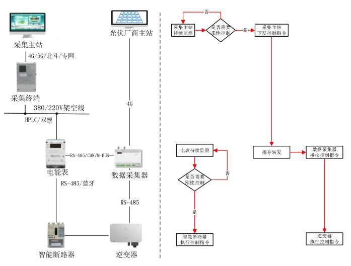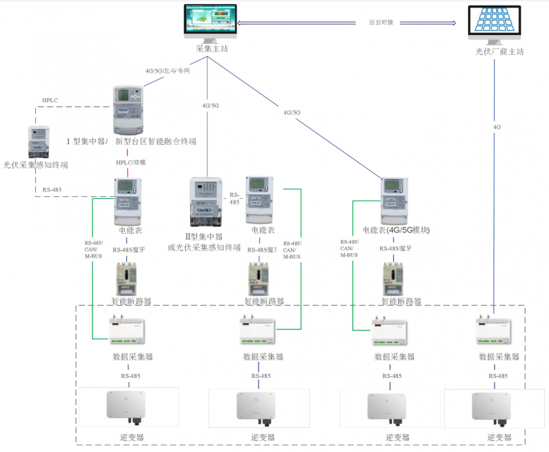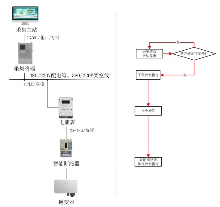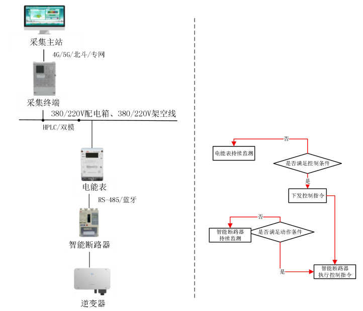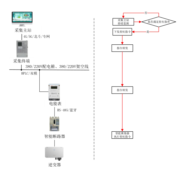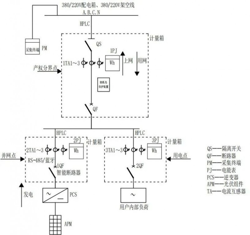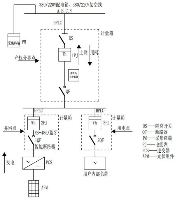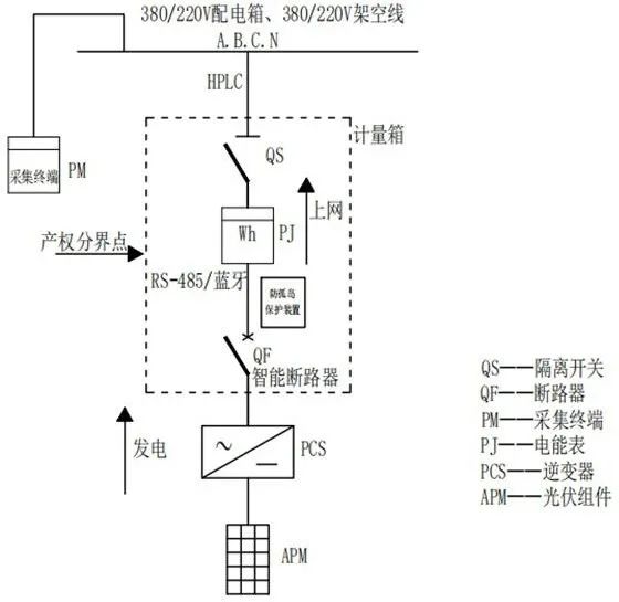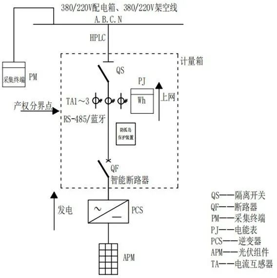 要實現(xiàn)上述目標(biāo),低壓分布式光伏計量采集需要安裝的主要設(shè)備包括:采集終端、智能電能表、電流互感器、智能斷路器、防/反孤島保護(hù)裝置等